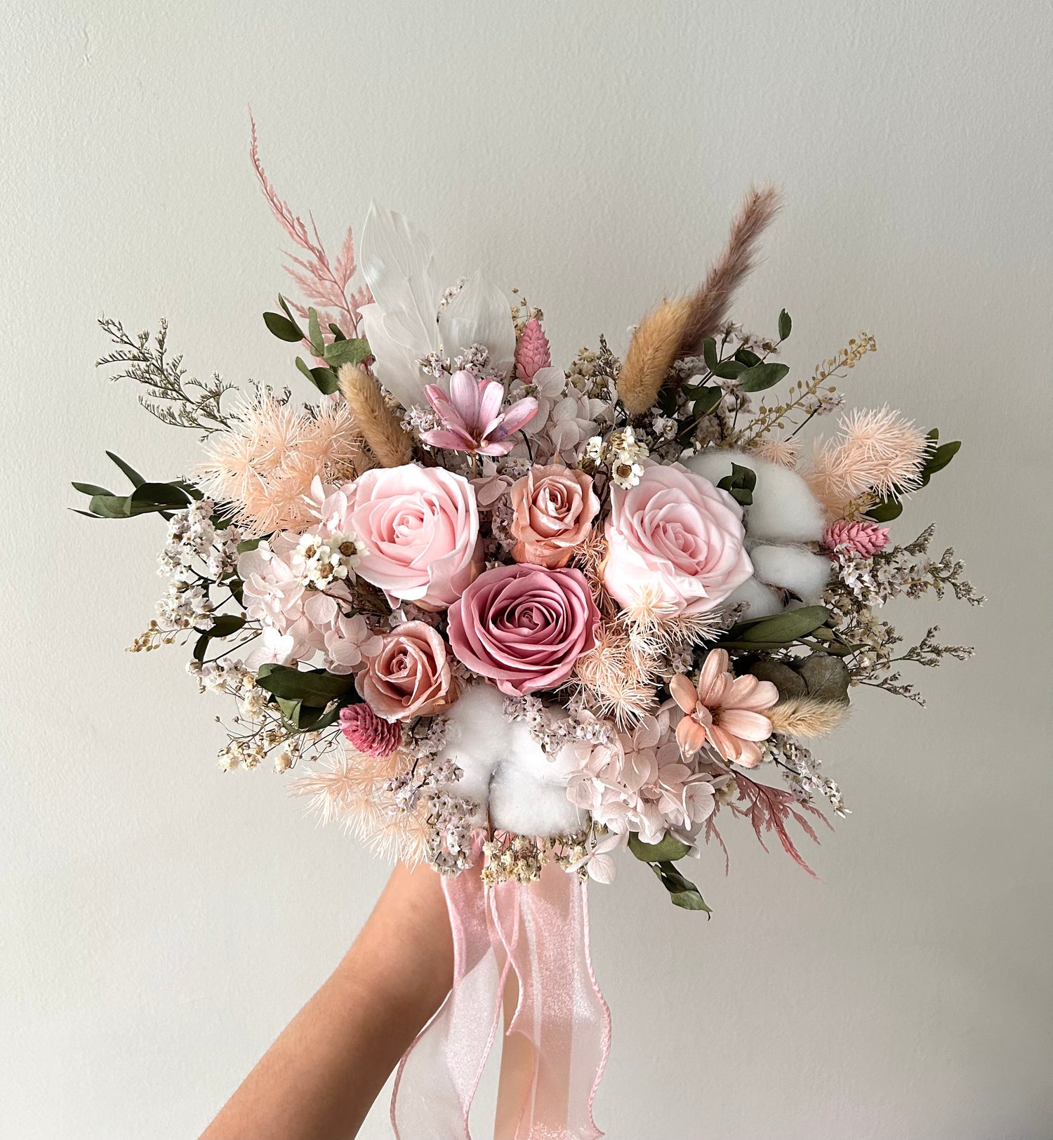 For fuss free, simple yet classy bridal hand bouquets, we have a range of preserved floral designs to pick from. Browse through the collections below!