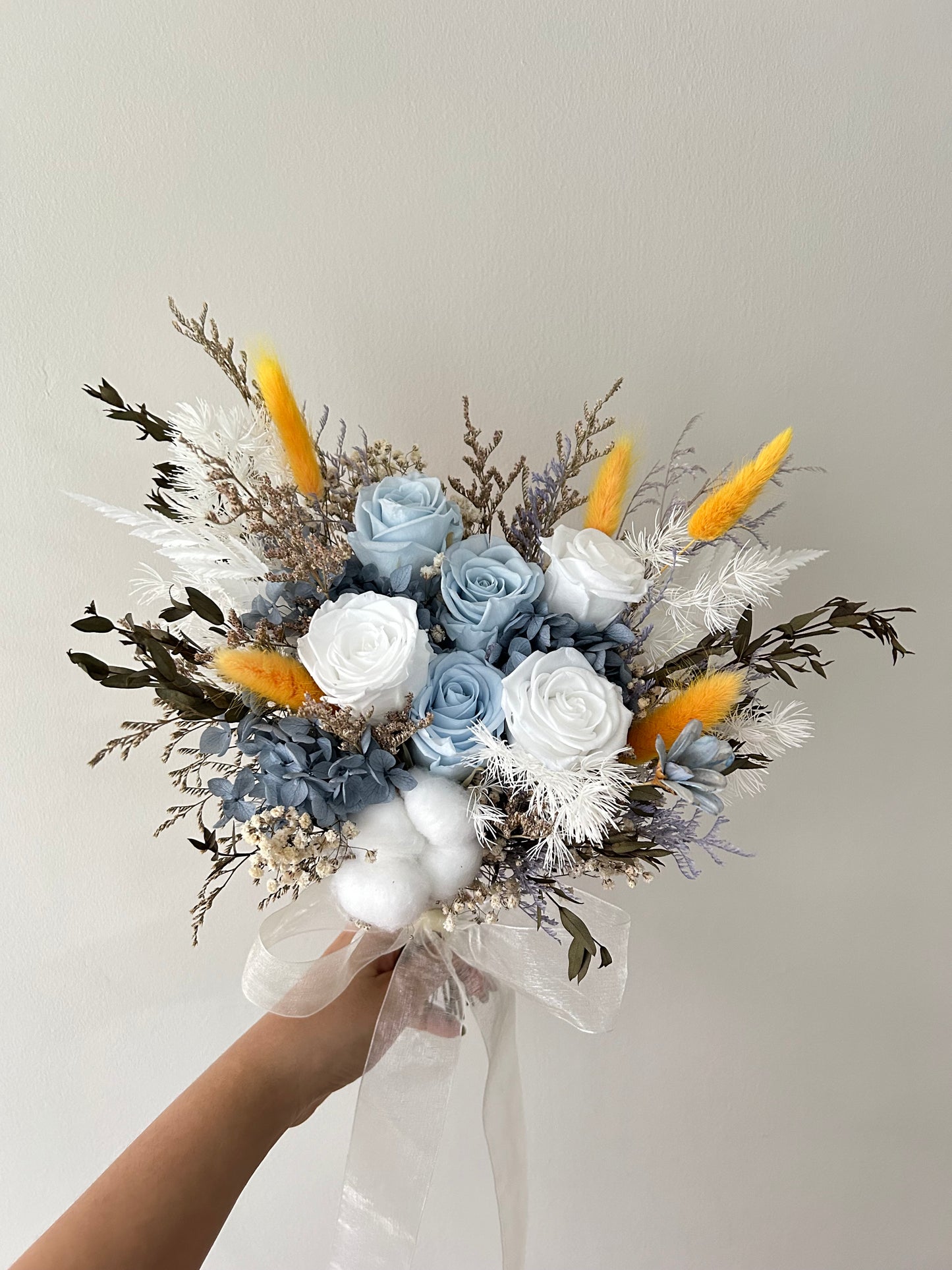 Preserved flowers typically last for months to a year. You can prolong the flowers' shelf-life by placing them in cool, dry area and away from direct sunlight. No water required too! For more floral tips, refer to FAQ page.